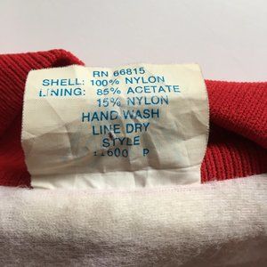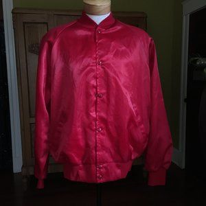 Awesome 80’s vintage satin jacket excellent condition, with no stains, rips or issues!! Snap buttons are all glossy -no chips, 2 outer slanted pockets, all ribbed hems are tight -no distention. Fully lined. Fun geometric Nashville spellout with glitter detail.