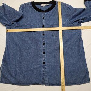 Vintage Westbound Denim Shirt Womens 1X Plus Button Up Long Sleeve Velour Accent