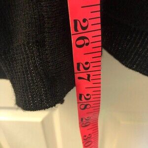 Vintage Westbound Women's Black V Neck Grandma Button Cardigan Sweater Medium. Vintage pre-owned. Please see all photos for visible condition. Had shoulders pad based on hook loop strips but no longer on the sweater - you could possibly get some and insert if so desired. Start of slight pilling. Pocket front. 70% acrylic 30% wool. 58909. Approximately 23 inch arm length and 27 inch length. Pit to pit approximately 21.5 inches.