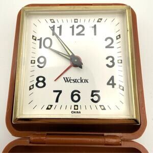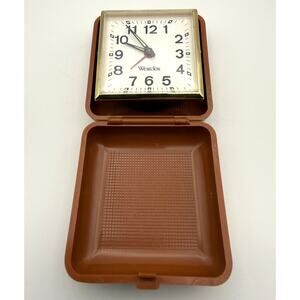 Vintage Westclox Folding Travel Alarm Clock | Brown Case | Wind-Up | Tested