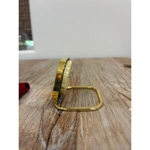 Add a touch of retro charm to your space with this vintage Westclox quartz travel clock. Featuring a sleek brushed gold-tone case, fold-out stand, and classic black numerals on a white face, this compact piece is both stylish and functional. Perfect for collectors of vintage timepieces or as a minimalist bedside or office accent.