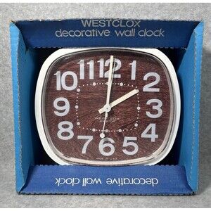 Vintage Westclox Walltone Electric Wall Clock Walnut Woodgrain USA White Case