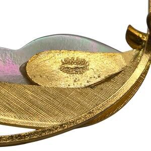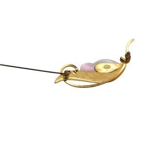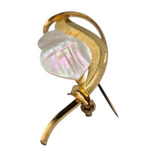 Iridescent mother of pearl carved leaf/petal over textured gold-tone leaf and curved stem