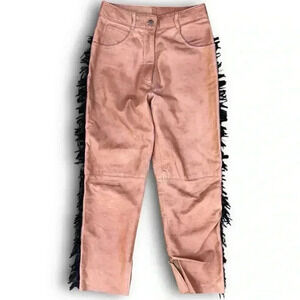Vintage Pia Rucci Leather Pants Handmade Fringe Brown 6 Petite