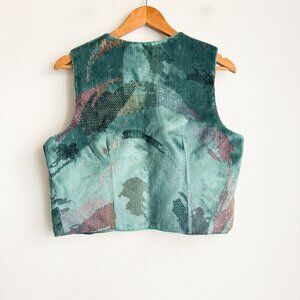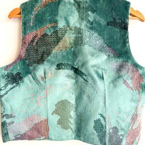Vintage Western Collection Turquoise Teal Carpet Fabric Cropped Vest L