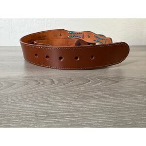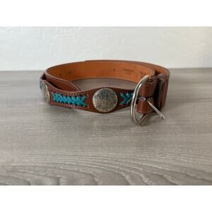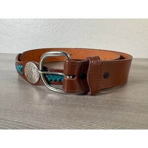 Vintage Western Concho Belt Men’s 42 Brown Leather Turquoise Laced USA Made Full Grain