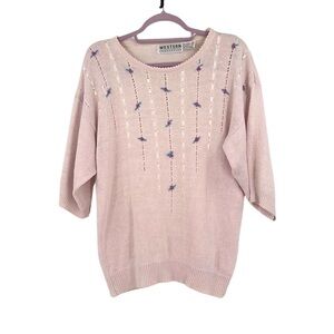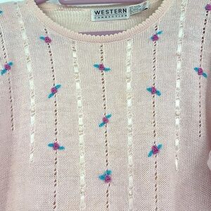 Vintage Western Connection Coquette Rose Cotton Blend Sweater Ribbons & Pearls