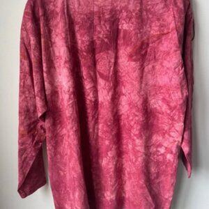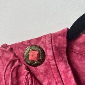 Vintage Western Cowboy Pink Beaded Fringe Long Sleeve Top Tie Dye Tunic