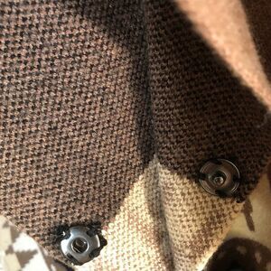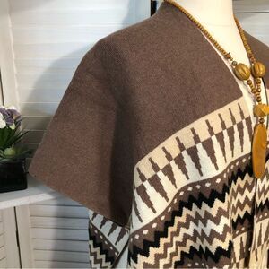 Vintage Western Cream Brown Wool Blend Poncho Cape Large
