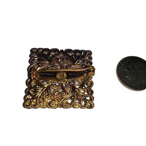 Vintage Western Germany Pin, Gold Filigree Small Square Scene Brooch