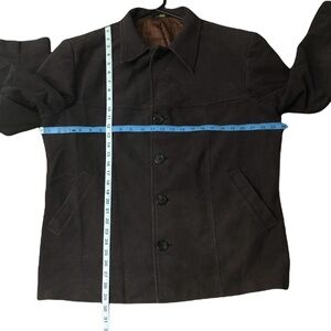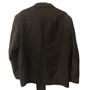 ♡Men's size 46, Brown. Style # 2928. Cut # 3018A. BDL# 071817. Spec# 0SP403-J, Seam undone in back, see photo. Suavé Men's Lightweight Coat Jacket, Color is a chocolatey Brown, Full front buttons and two buttons at cuffs, Collar. Coat has a western/southwestern style, Made in Guatemala. Faux suede feel to me. Vintage men's faux suede coat feel. Pre-loved item looks in good condition to me, please be aware of some natural wear and distressing. See descriptive photos for approximate measurements, condition & care/material tags.