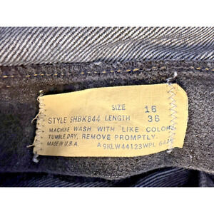 Tag size: 16x36; measured flat: waist approx 15" (30" total), inseam approx 36". See measurements as the vintage tags don't match measurements. Appears to be altered or youth 16.