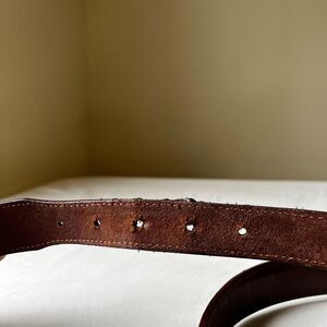 Vintage Brown Leather Deer Belt Silver Buckle & Conchos Western Braided 42