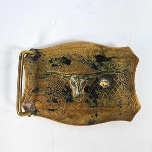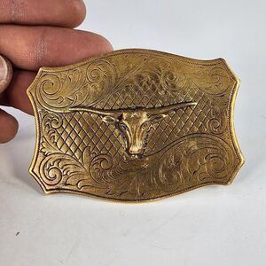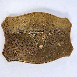 Vintage Western Longhorn Steer Brass Buckle For Skull Justin Boot Texas Bright