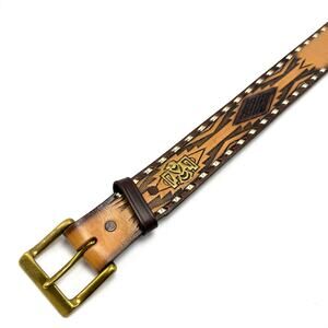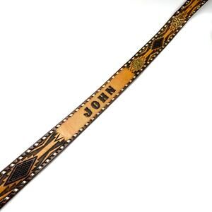 Vintage Western Name Belt 34 John Brown Leather Tooled Painted Thunderbird Brass