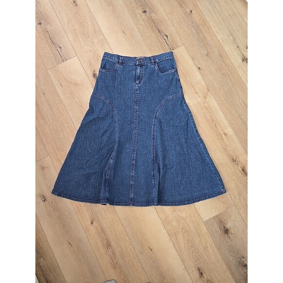 Vintage Western Prairie Cowgirl Retro Modest Flared Panel Denim Skirt Womens PM Choices Petite