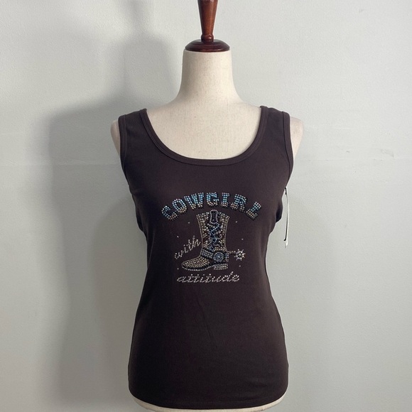 Vintage Western Ribbed Tank Top Boot Print Austrian Crystal Large