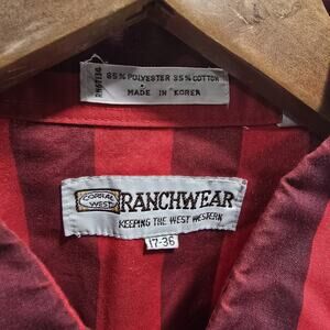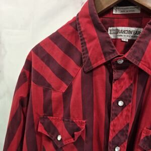 Vintage Western Shirt Mens XL Striped Red Pearl Snap Button Lightweight Cowboy