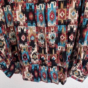 Vintage Western Shirt Womens 14 Aztec Southwestern Rayon Boho 90s Liz Claiborne