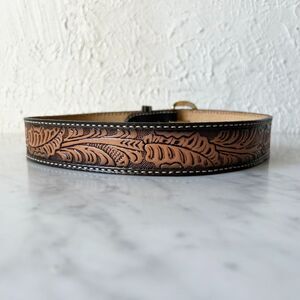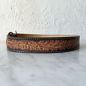 Vintage Western Tooled Leather Belt Cowboy Style with Brass Buckle-Men's Size 26