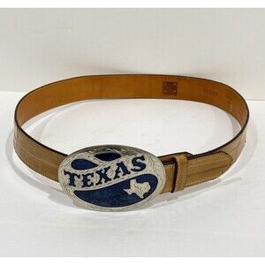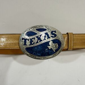 Features a large removable TEXAS buckle by American Buckle Co., with silver and blue enamel details and the Texas state outline