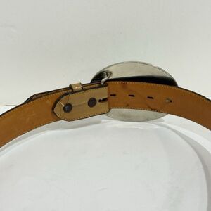 Vintage Western Tooled Leather Belt German Silver Horse Buckle Brown Size 34