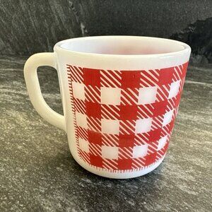Vintage Westfield Milk Glass MOM Red White Plaid Gingham Coffee Mug