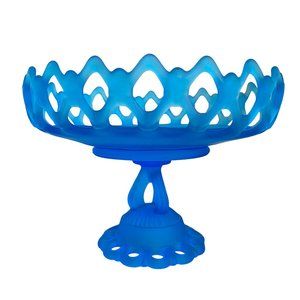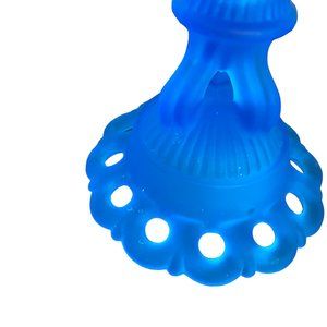 Vintage 1960's Westmoreland Elegant Glass Blue Satin Mist Doric Open Lace