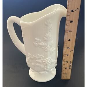 Vintage Westmoreland Milk Glass Pitcher Paneled Grape Floral Marked W. Excellent pre-owned condition. No chips, cracks. Weighs 3lbs 10 oz. Measurements in photos.