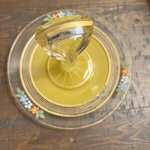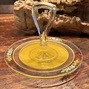 Vintage Westmoreland Yellow Glass Serving Tray Floral Design & Handle