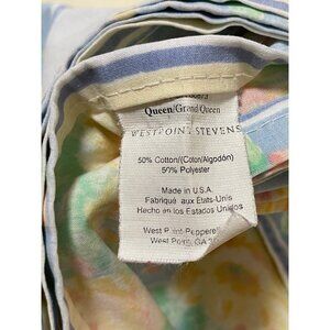 Vintage Westpoint Stevens Queen Size Floral Yellow Blue Pink Flat Sheet MCM
