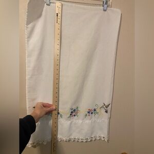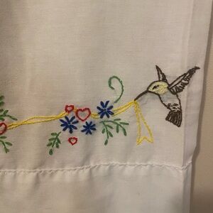 In good preowned condition. May have some spotting/staining due to age. See pics closely. Embroidered hummingbird pattern. 29x19