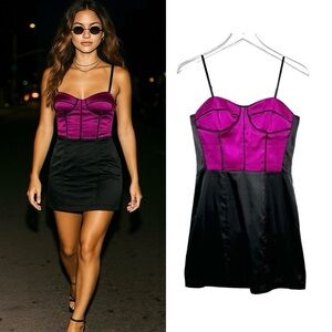 Vintage Wet Seal 90s Fitted Bustier Style Strappy Women’s Satin Mini Dress Sz M
