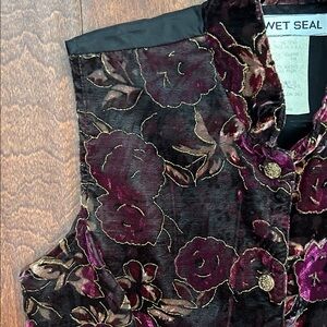 Vintage Wet Seal Burgundy Floral Velvet Button Down Vest Shirt, Size Small