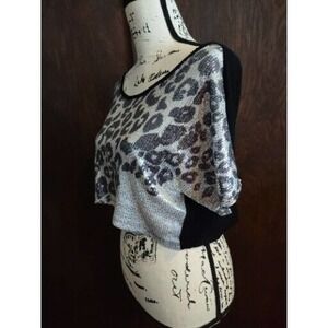 Vintage Wet Seal Crop Top Size Medium Sequin Animal Print Club Black Silver
