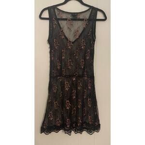 Vintage Wet Seal Mesh Sequin Lace Button Side Dress (M) Whimsigoth Vamp Romantic