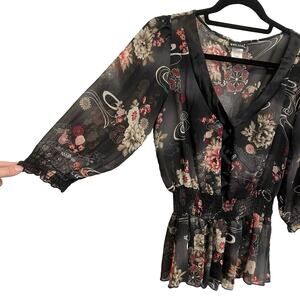 Vintage Wet Seal Sheer Peplum Peasant Blouse