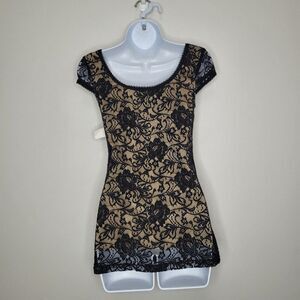 Wet Seal top: black tan, cap sleeve, mesh, party, deadstock, y2k