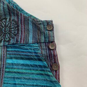 Vintage Wevez Turquoise Striped Cotton Stamp Print Relaxed Overalls One Size
