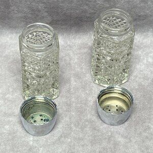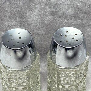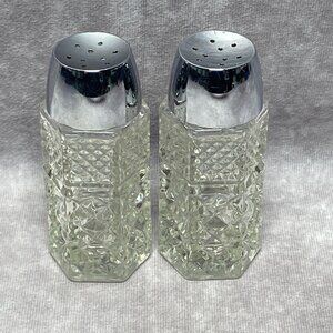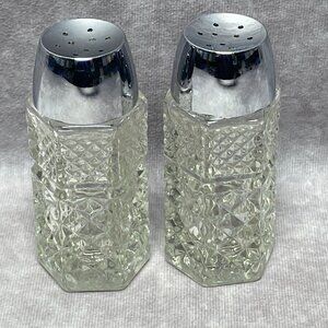 Vintage Wexford Pressed Glass Salt & Pepper Shakers With Chrome Plastic Tops