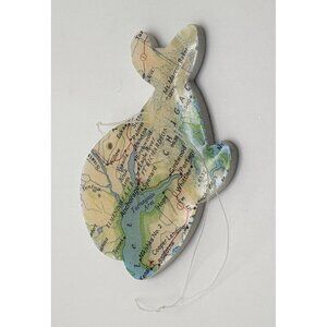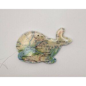 This unique whale-shaped ornament features a detailed map design, adding a nautical touch to home decor or holiday settings. Its compact size and intricate detailing make it an eye-catching piece for map enthusiasts and collectors alike.