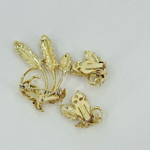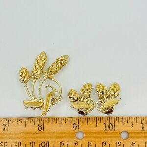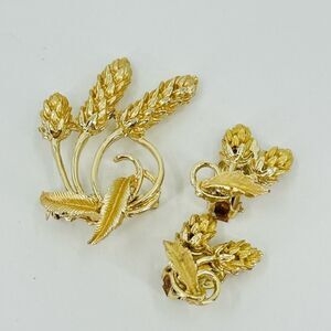 Vintage Wheat Sheaf Flower Brooch Pin & Clip-on Earring Set Gold Tone Midwest