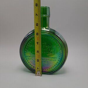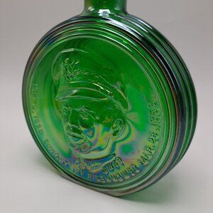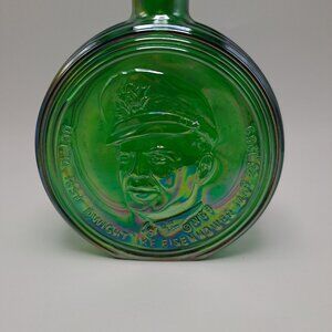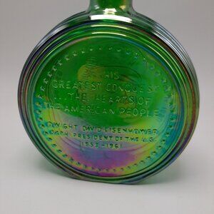 This Vintage Wheaton Green Glass Bottle is a First Edition Dwight Eisenhower 1969 Commemorative Flask. A stunning iridescent piece, this collectible adds a touch of history and class to any collection.