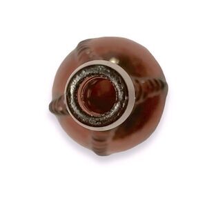 This adorable vintage miniature is in excellent condition. There are no chips or cracks. It is amethyst glass and is round with a long neck. The front has “Ball and Claw Bitters” written on the front, and is shaped like a ball claw foot table leg. It’s approximately 3” tall.