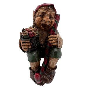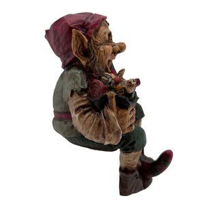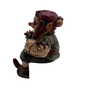 Vintage Whimsical Gnome Stocking Holder or Fun Shelf Sitter with Box Elf Present