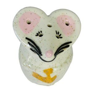 This vintage large ceramic cheese shaker is shaped like a whimsical mouse holding cheese. Perfect for adding a touch of nostalgia and charm to your kitchen or dining table.