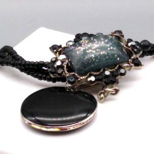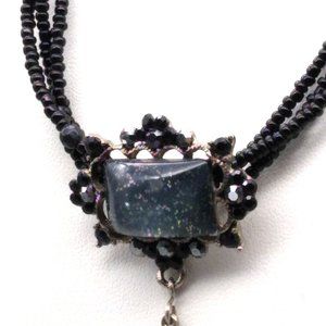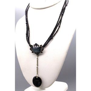 Vintage Whimsigoth Lavalier Pendant Necklace, Triple Strand Black Seed Beads