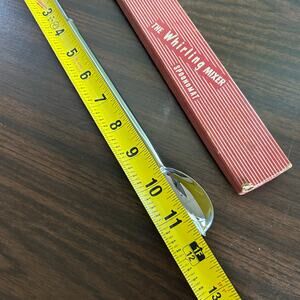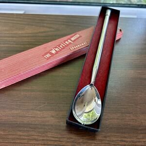 Add a touch of retro fun to your home bar with this vintage Whirling Mixer “Spoonomatic”, complete in its original box. This clever mid-century bar tool measures approximately 9 inches long, extending to 12 inches when pulled outward. When you press down on the handle, the spoon spins—perfect for mixing cocktails, milkshakes, or iced coffee in true 1950s style!