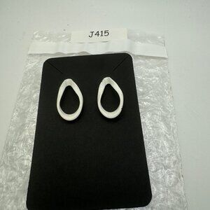 Vintage White Abstract Loop Earrings Post Back