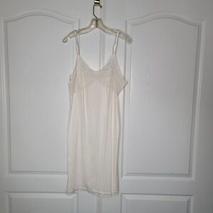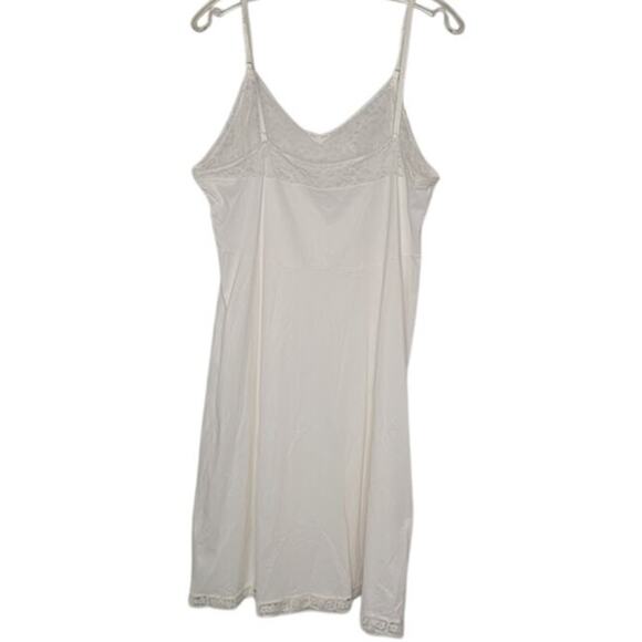 Vintage White Adjustable straps lace bust full slip Size Large Nylon Lacespot on front